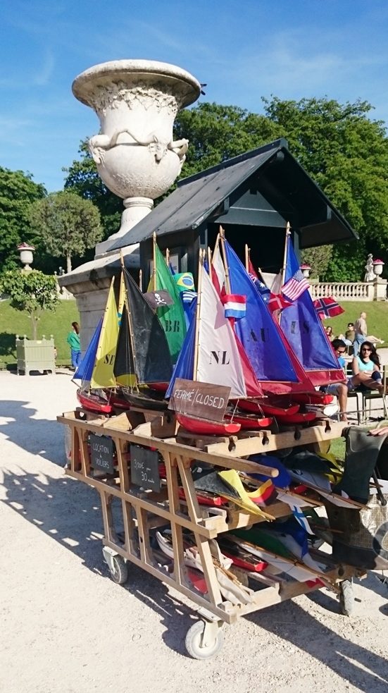 • When the sun would come out, everyone would head for the park “ponds”–Tuilleries, Luxembourg, wherever–and tan, while kids launched their toy sailboats.
