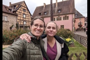 Heather and Stephanie stop at Eguisheim, a village along the Route des Vins d'Alsace.
