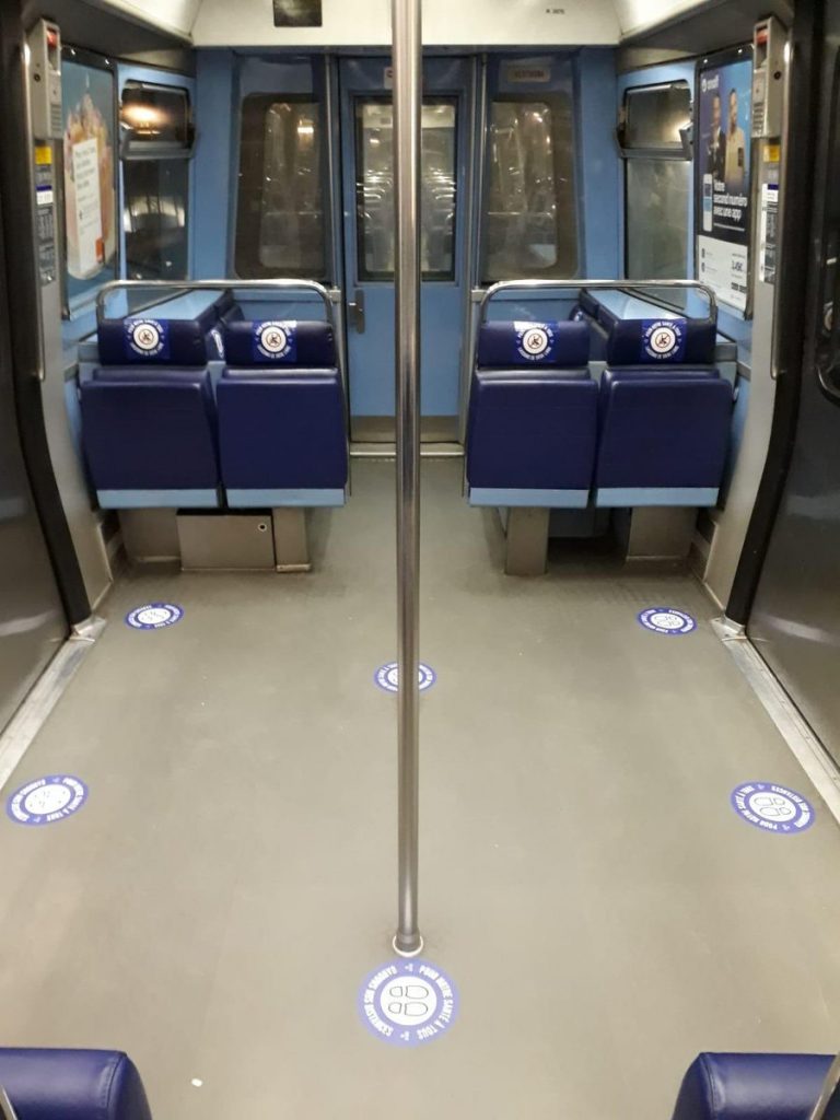 – there are stickers on the floors to show where you can sit and stand to maintain distance between passengers in the cars and on the platforms