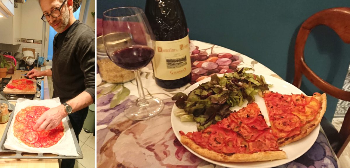In the meantime,enjoy one last “What we had for dinner” photo, featuring Fred’s tarte à la tomate et à la moutarde! – Heather