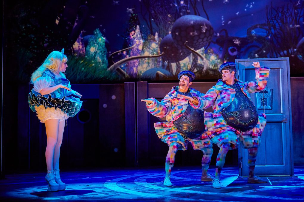 Throughout the show I kept changing my mind about who was my favorite character. Aly (Lois Chimimba) and Alice (Carly Bawden) are the stars, but her mother’s voice is stunning (Golda Rosheuvel), Mrs. Manxome’s evil glee is contagious (Anna Francolini), the and the White Rabbit (Joshua Lacey)…well, who wouldn’t want to follow him? Hal Fowler’s character actually morphs throughout the show from the MC to the Cheshire Cat to the Caterpillar, with an entire choir for a body.