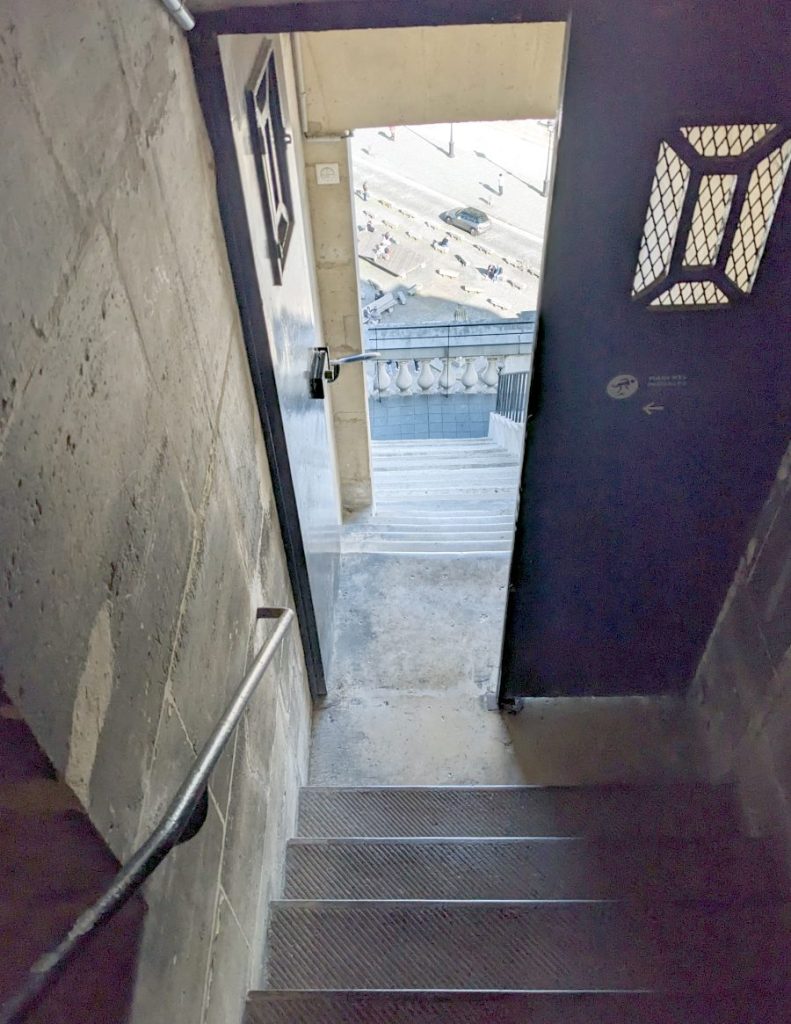 The panorama is only open from April 1st until October 31st. You’ll need to purchase a specific timed ticket online* that includes the entrance to the Panthéon as well as the panorama for €15 (just the regular entrance and crypt are €11.50). It’s free if you’re under 26, or with the museum pass, although you’ll still need the online ticket reservation. Note that you can get the discounted partner rate of €12.50 if you have a Thello, Thalys, SNCF Intercités, Paris Visit, or Les Amis du Louvre card, or if you have your river cruise ticket from the Vedettes du Pont Neuf. The audio guide (€3) only covers the Panthéon and crypt, not the panorama. The last audioguide is rented at 4:45pm.