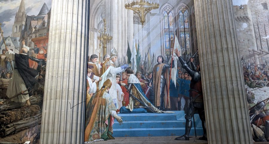 They decorated it with art: dramatic frescoes and sculptures glorifying the Great French heroes and conquerors. Although it’s considered a secular monument today, most of France’s early heroes were also closely linked to the church, like Clovis, Joan of Arc and Louis IX, aka Saint Louis (the latter two being the favorite saints of the Far Right in France). Joan of Arc has an entire wall dedicated to her life story (bring binoculars if you want to be able to see the smaller scenes at the top).