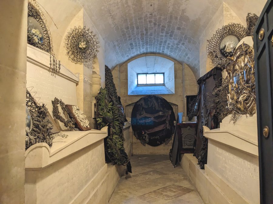There are also a few shelves of books in one corner of the crypt where you can sit and read works written by or about the people interred there (at a glance, all in French), although I don’t know who would have time (they’re also for sale upstairs in the giftshop).